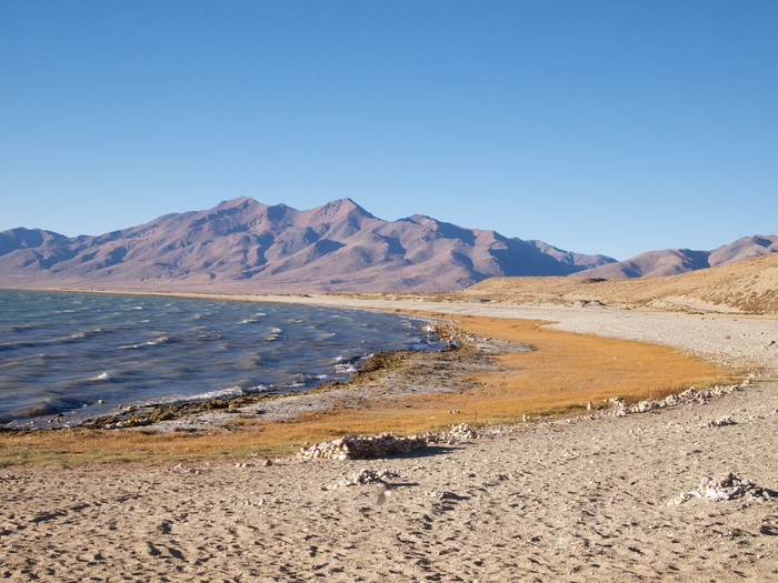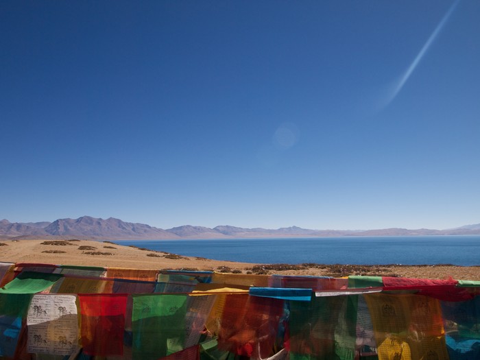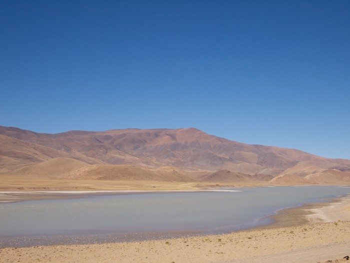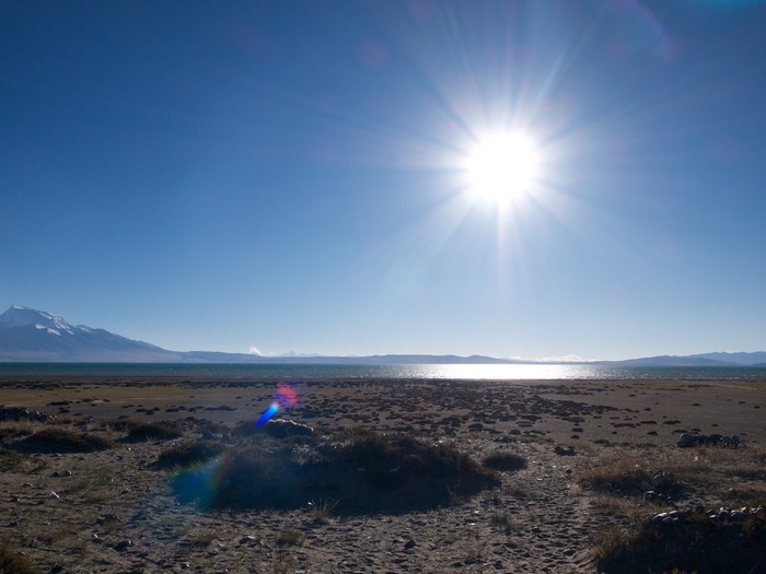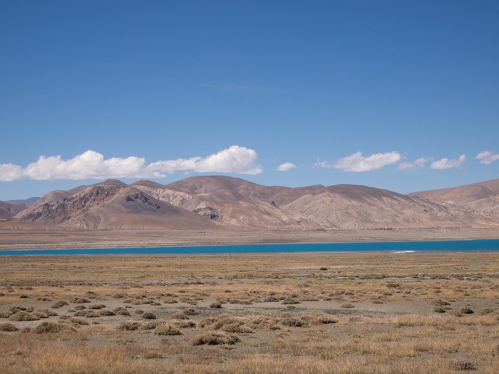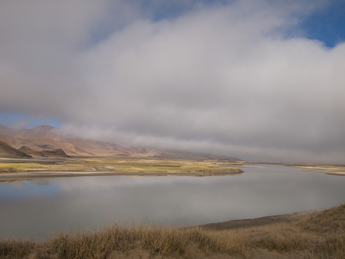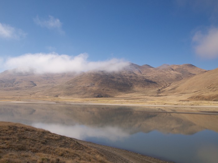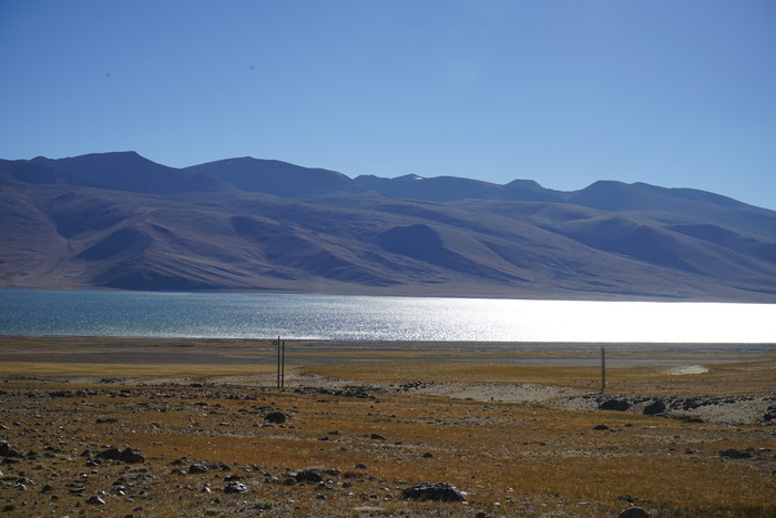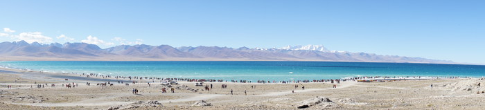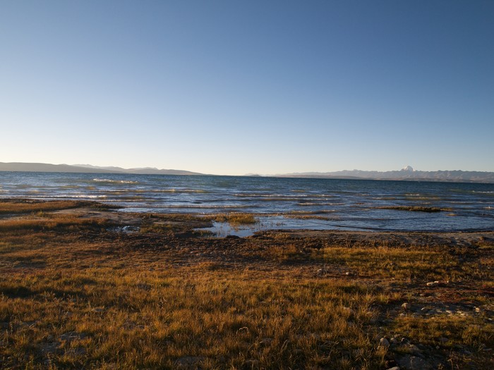 虽然说赶路不过我们还是顺道来看鬼湖---拉昂措,司机说想试试鬼湖和圣湖的水。圣湖和鬼湖与神山对望,鬼湖和圣湖就在公路左右两侧。鬼湖的水也和漂亮,就是没圣湖那边有风有浪,平静如镜。