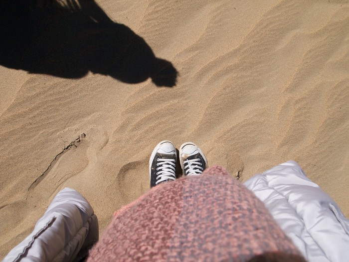 一路上看到标识牌写着七彩沙漠,就顺道开车过去看看,就是几个沙漠化的小沙丘,后面也有,只不过这里的沙囤积比较多比较集中罢了。