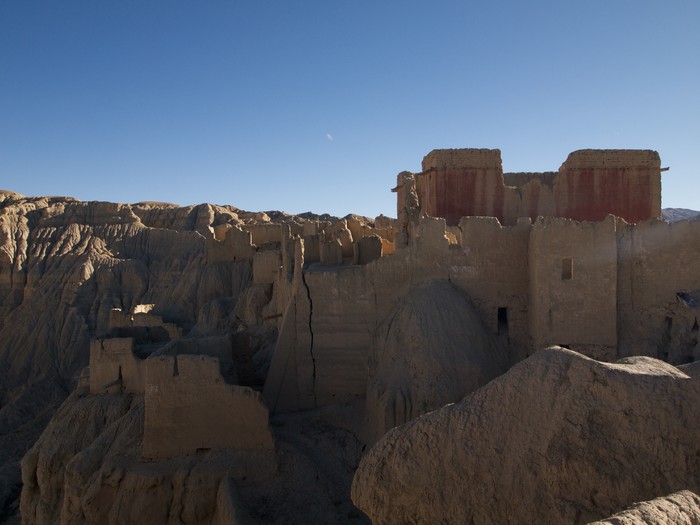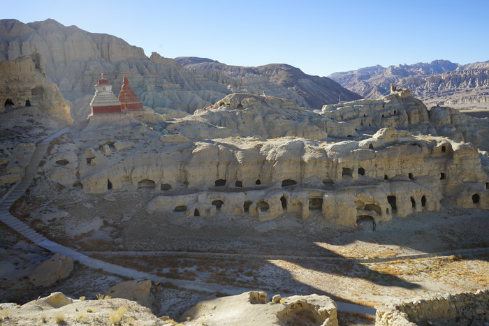 后面神秘的古格王朝也是居住在土林里,虽然以土为房,但是因信奉佛教的缘故,所以里面还有寺庙、壁画等,最上面红色和白色的房子,好像是国王住的地方。