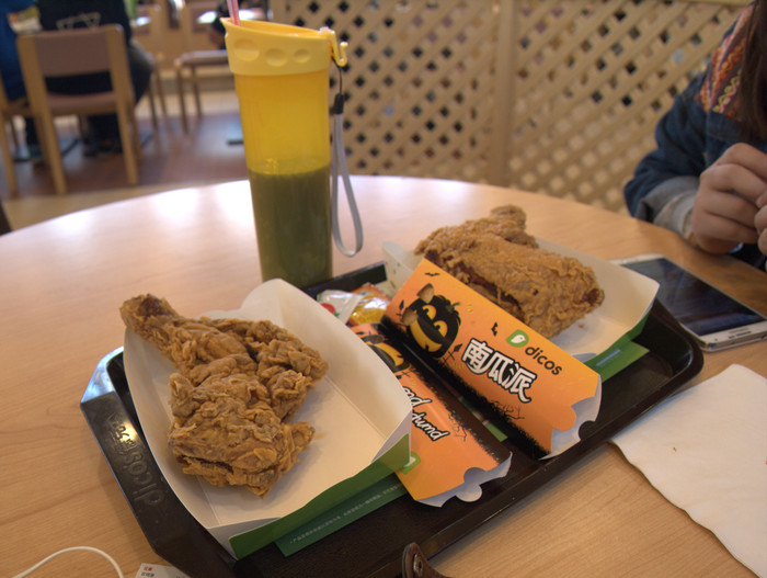 藏餐实在吃不惯,粤菜又这么贵,所以就去德克士试试手枪腿,当时广州还没普及,只有广州东有一间而已,手枪腿确实挺大的,会员日来吃划算。