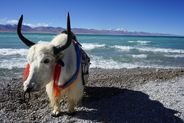旁边有耗牛可以拍照,也有很多人来这里拍婚纱照,之后的纳木错也是。