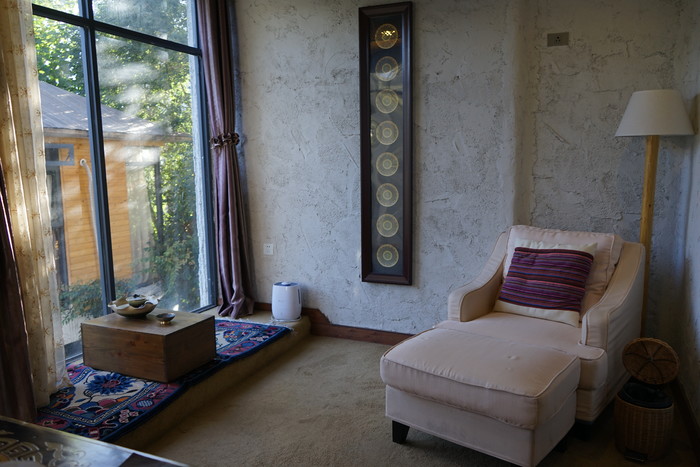 第二天我们写好明信片,就出发去我们原计划订的民宿,因为不能退房,所以加上表表哥他们的房间我们两个人住两间房,而且表表哥那个房间还帮我们upgrade了,换了套房。因为我们的星空房实在太小了,虽然有阳台但是放不下行李箱,所以我们吃饭和行李箱都摆在表表哥的房间,真是一个爽。虽然我们订的观星房是玻璃屋顶,还配备望远镜,但是在阿里看过那种肉眼可见的众星拱月之后觉得在拉萨没什么好看的。