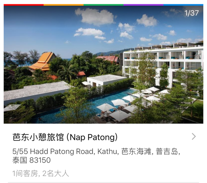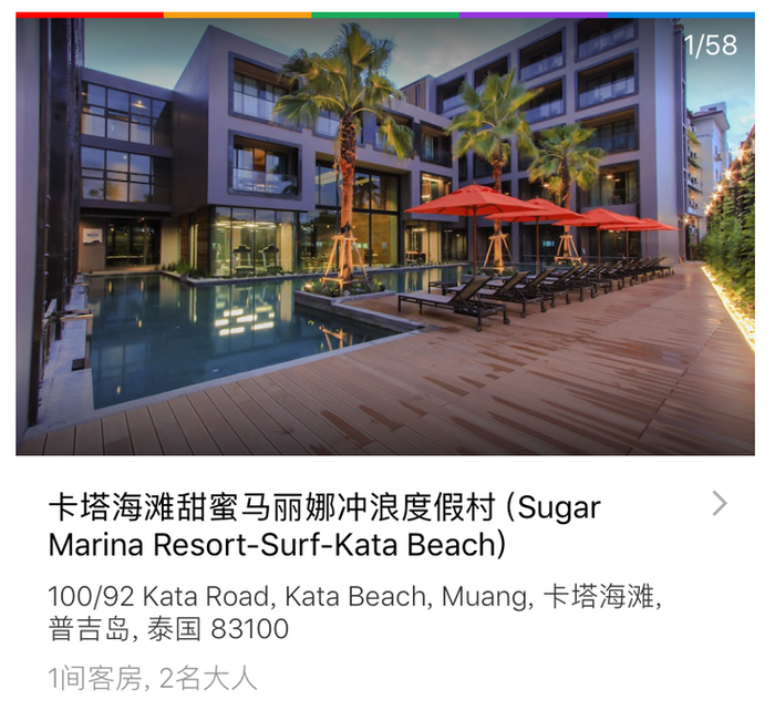 酒店:携程 agoda booking上都可以,对于之下,我在agoda定的,支付宝支付很方便,这次的酒店我一共定了三家,一家过渡酒店(因为是凌晨到的,而酒店一般是下午两点check in),两晚在芭东 the nap 酒店,两晚是卡塔的 Sugar Marina Resort -SURF,这两家都是四星级酒店,服务设施好,但是价格贵了些,THE nap日光房两晚1688元(含早),Sugar Marina Resort -SURF豪华房两晚(不含早)1060元。