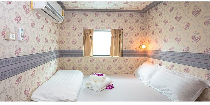 跟小哥说有没有别的房间,小哥说有,前面那栋楼有一间5楼的,但是是两张床,要加1000泰铢每天(我们定的时候两晚1288元),这样算下来一晚差不多人民币850,一咬牙,就选了那个5楼的(我心里当时那个滴血啊o(╥﹏╥)o ~~·~)。难得出来一趟,花了1288,实在不想住那样的房间,总的来说850一晚,确定贵了些,设施挺齐全(保险箱、雨伞、浴袍、mini bar),房间还是两张小床,标间式样的,性价比不高,如果有下次,我不会选择住那,你懂得~~·~