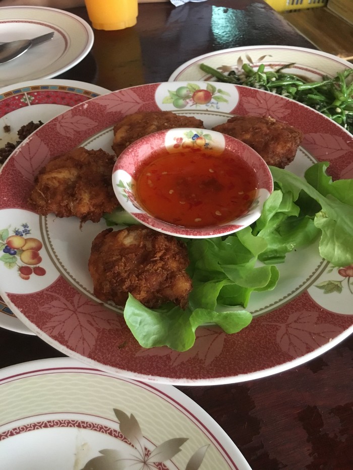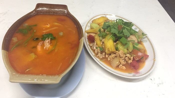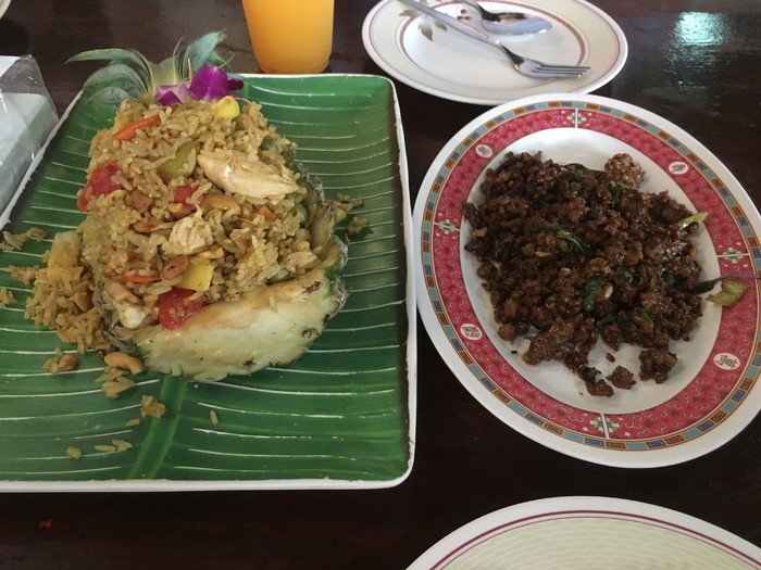 午饭在我们酒店周围随机找了家餐厅,携程美食林推荐的,味道很不错,这一次机缘巧合尝到了真正菠萝饭的味道,菠萝是新鲜的,炒饭味道相当好吃,我那时候才知道,在巴东那家网红餐厅NO.6吃的菠萝饭有多差劲,秒杀~~~一顿饭吃了540泰铢,便宜又好吃,就是忘记拍照了o(╥﹏╥)o