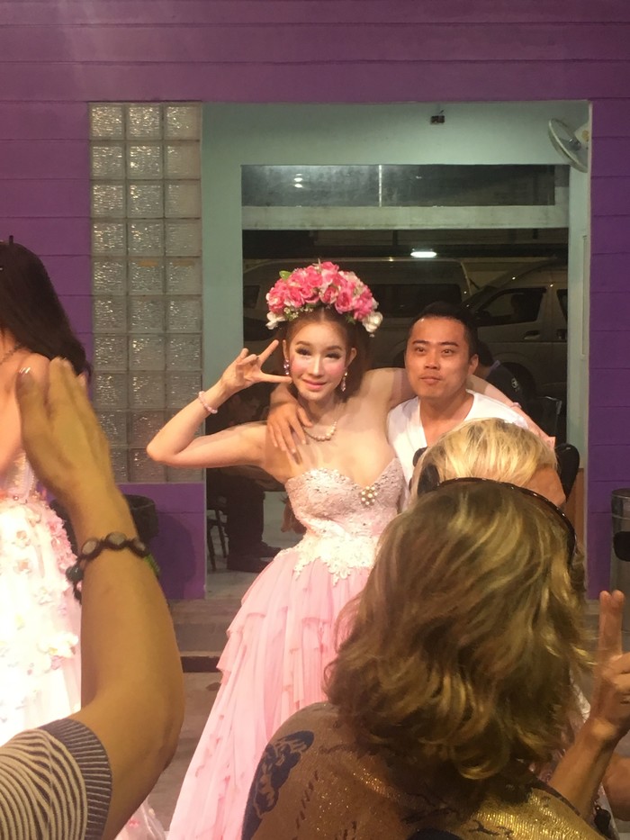 西蒙人妖秀,整整一个小时的表演,舞台效果很好,服装华丽,演员很卖力,一天好几场下来,在他们脸上看不到疲惫,其中有个胖胖的人妖会下来跟男观众互动,我们同车的一个小哥就被亲了,口味略重~~~看完秀会站成一排,合影要花钱,人妖会用中文喊"来来来"。我倒是被一个长相甜美的小哥吸引了,笑起来超甜,看图