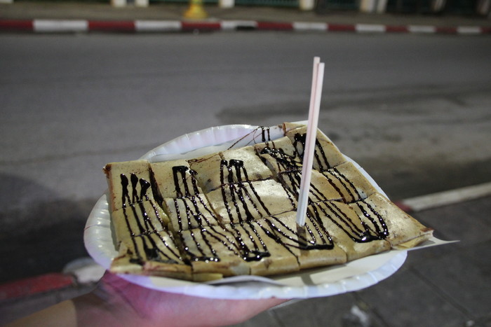 也不知道是不是芭东的啤酒太烈还是我这两年生孩子没喝酒,和昊哥豪气的干了杯啤酒后,就感觉脸火辣辣的,有点想睡觉了,昊哥还想着走走消消食,消消食,消消食,结果又在路边买了个传说中的香蕉煎饼,超级好吃,可惜我俩真的吃不下了,硬塞着吃完的——论吃货的胃口。