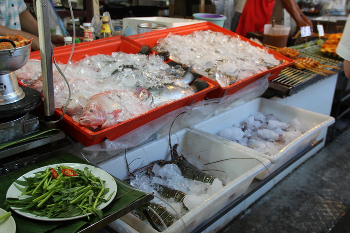 从SPA馆出来已经是下午4点多,我们打算再去一趟昨天那个大排档,昨天我特意问了一个小摊的老板他们的营业时间,他拿计算机按了一个16.00,又按了一个22.00,OKOK,我懂了,语言不通,交流也可以这么简单,这就是普吉~~~