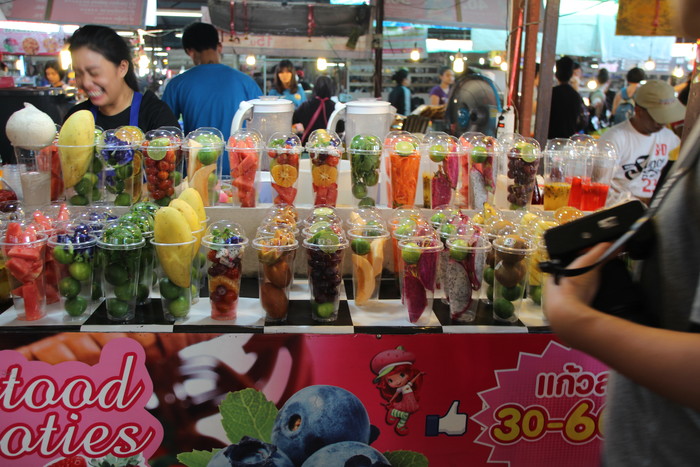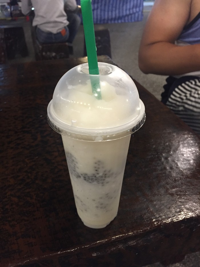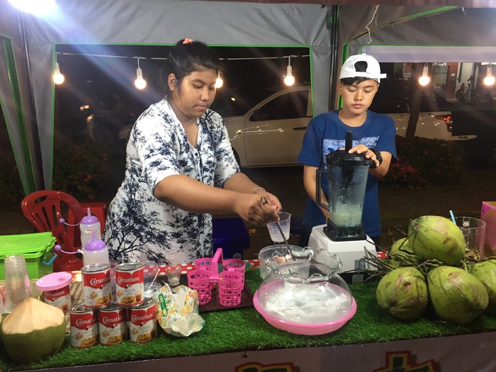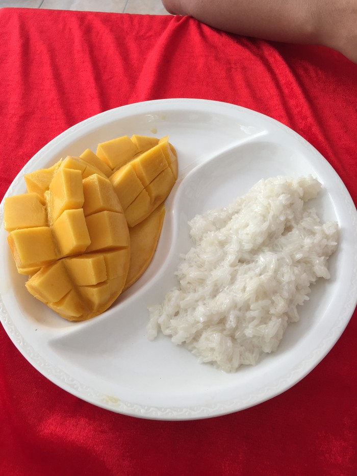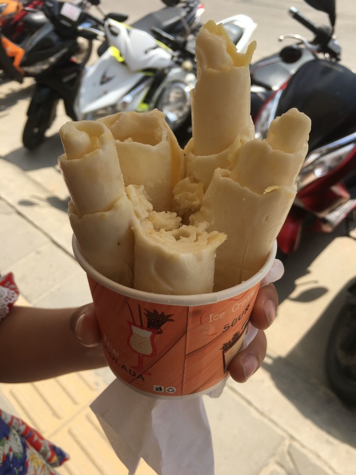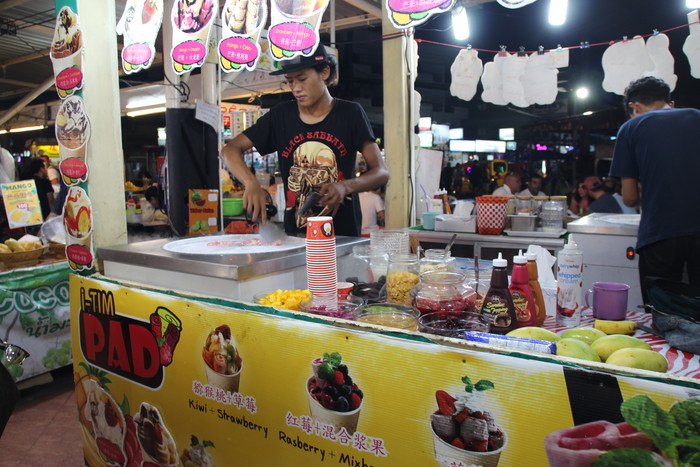 后来在街边吃了个炒冰,是拿这个牛奶和新鲜水果做的,超级好吃,80泰铢一个,我们连吃了好几个~~~