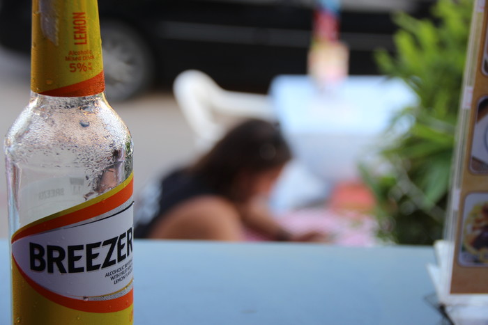 走累了,找个吧台坐下,点了啤酒跟柠檬沙冰。