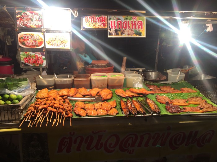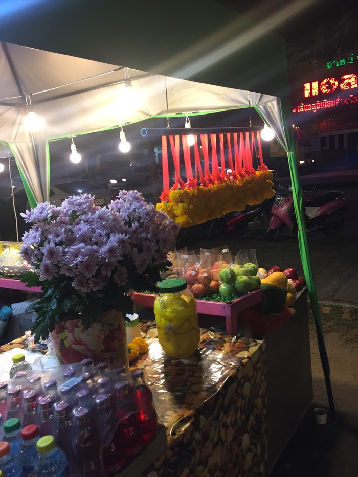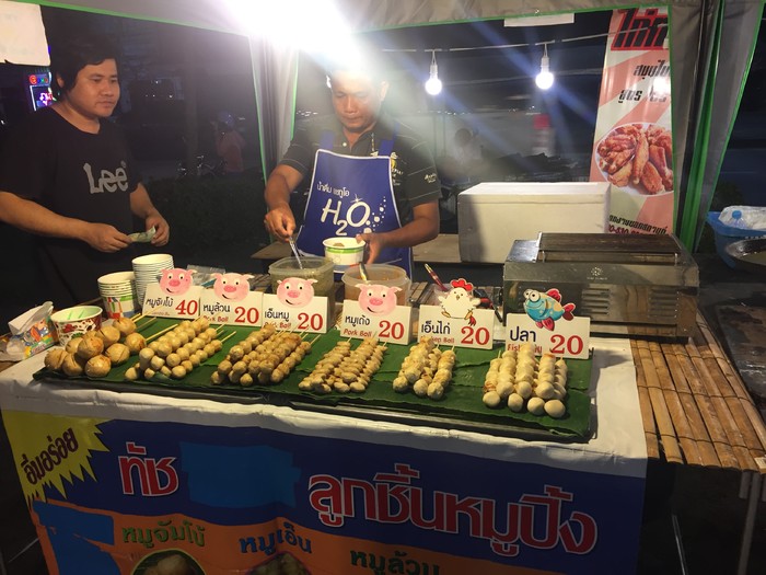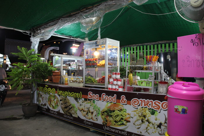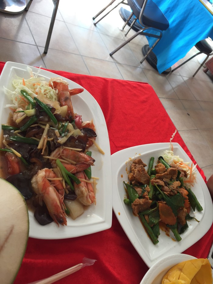 我特意记下了这个名字,因为我们第二天又去了,晚上10点去机场,八点的时候我们还在这里大排档(离酒店30分钟摩托车车程),里面人很少,但是几乎没有游客,都是他们当地人来这吃,所以大部分商家都不会英文,只会泰语,我们只能靠翻译软件和肢体语言交流,虽然语言不通,但依然能感受到他们的友好跟热情,还有个驻唱的帅哥(原谅我没拍照)一边弹吉他一边唱~~~