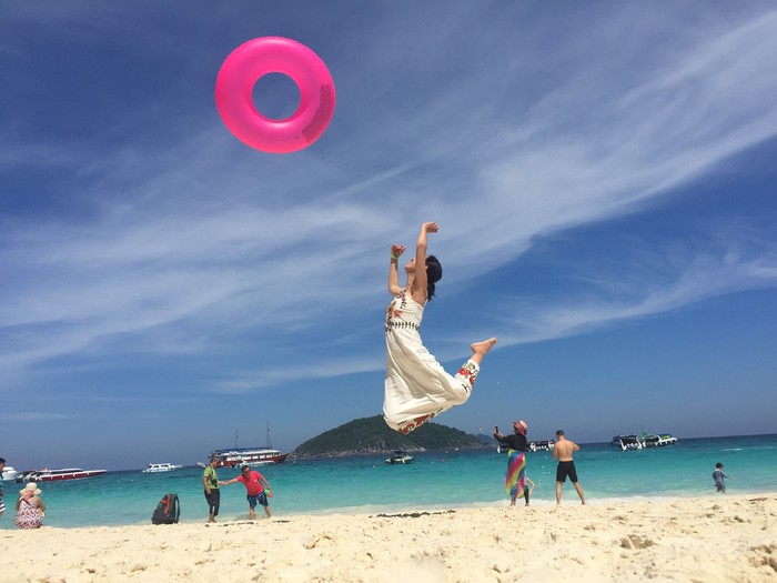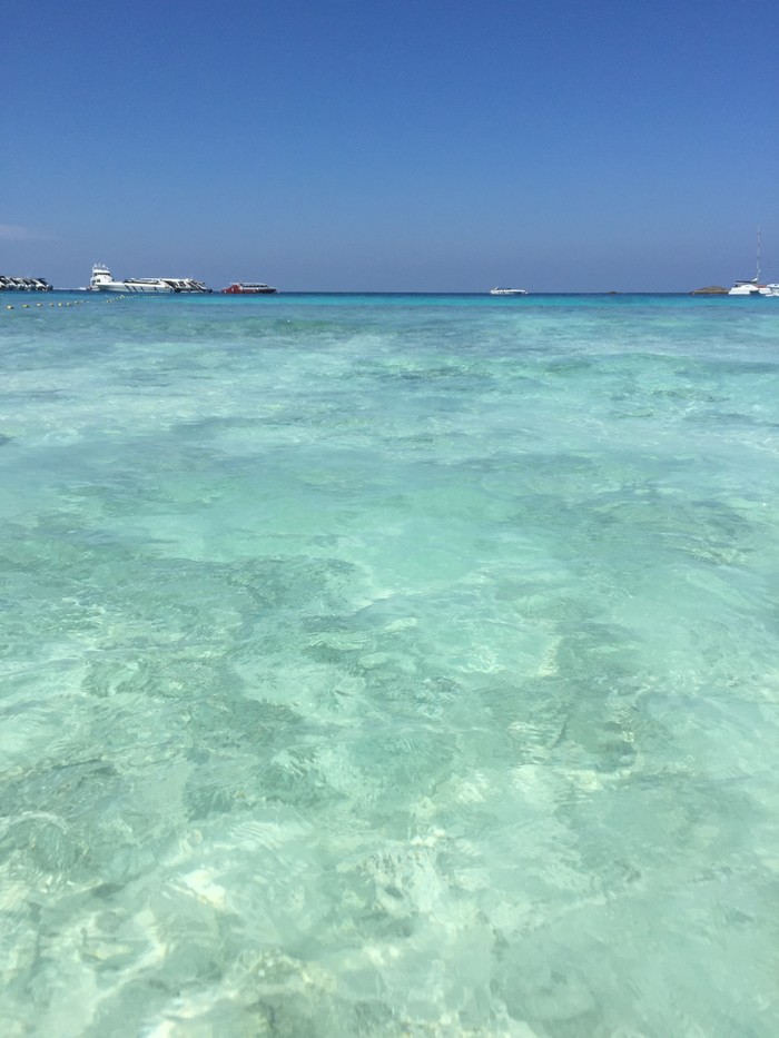 我们提前买好了沙滩袜,潜水衣(长袖长裤防晒伤)。把行李寄存在了码头,因为我们是两日游,所以还是带了个20寸的行李箱,事实证明,这行李箱太不方便了,因为快艇靠岸,我们都要拿着行李从水里趟过去,为了避免打湿,要把行李举老高,辛苦我昊哥了。
