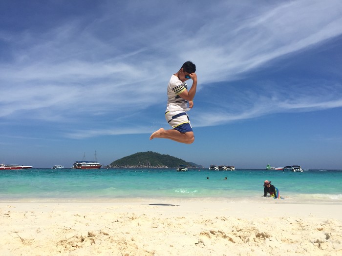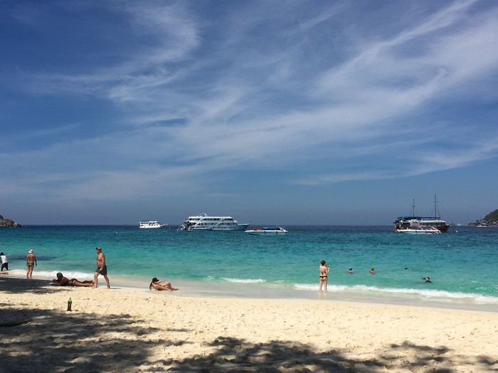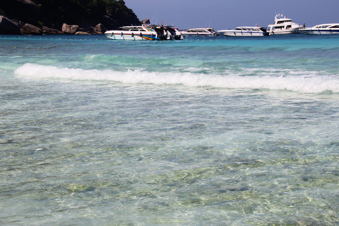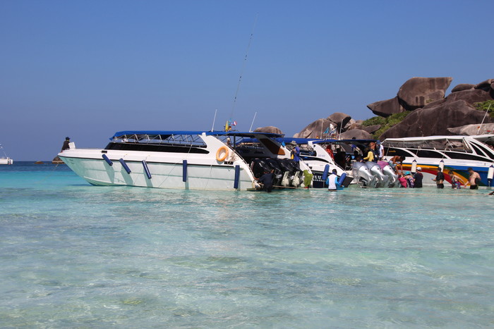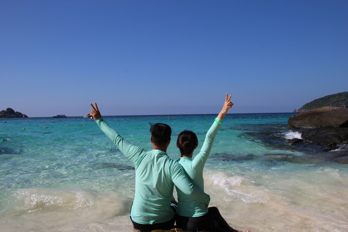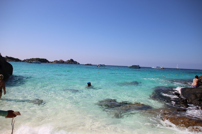这里我要总结一下,出发去斯米兰的话最好两日游,我们这趟亲身体会下来,一日游就是早上6点多出发,两个小时车,1个多小时快艇,岛上吃个饭,拍拍照,带你到两个地方去浮潜,浮潜时间也很短,关键全是人,看到的都是人脚,水也不是很清澈,船员也顾不上你,因为游客实在太多,服务也不是很好(也不能怪船员,他们每天都要接待几十个人,岛上没有信号,喊人集合都要扯着嗓子喊)浮潜结束,带你到岛上自由活动半个小时就要返程了,很赶的行程,根本不能好好玩。所以,能两日游就尽量两日游,因为一日游的游客走了之后,我们两日游的好日子就来了~~~~