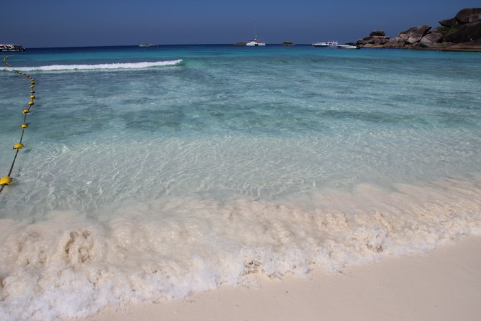 这里百科一下:斯米兰群岛Similan:泰国限时开放的岛屿,是一片由9个群岛所组合而成的区域,浮潜、深潜、冲浪、白沙滩...一应俱全。(开放时间:每年11月-次年4月,通常4月30日是最后的登岛时间,其余时间是不允许登岛的)。上岛不允许穿鞋,为了保护生态 ,但是我还是看到同行的几个人偷偷把拖鞋带上了岛,建议大家,既然走出国门了,还是尊重下当地的规定~~。