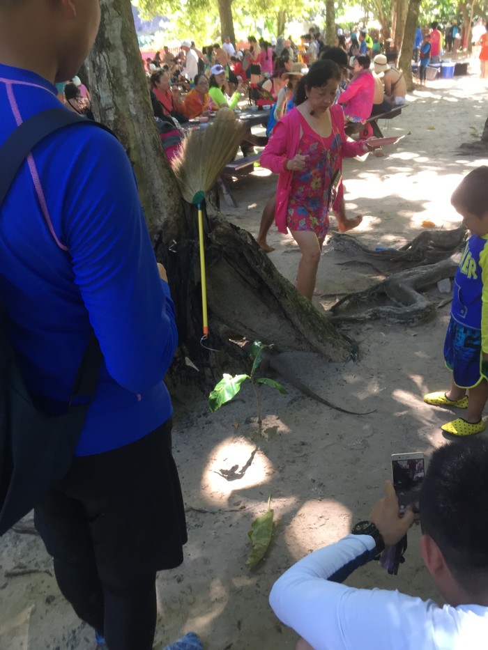 岛上的用餐环境真是很简陋,大家找到对应的领队,发放午餐,我跟昊哥都是席地而坐,然后发现一只大蜥蜴在慢悠悠的散步。