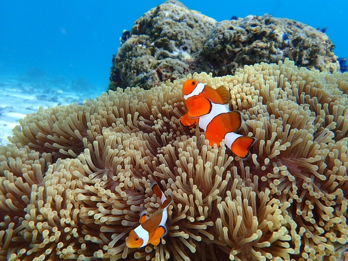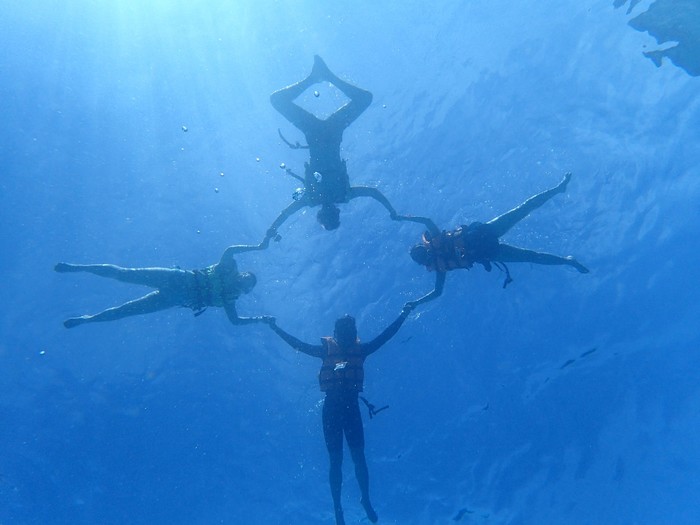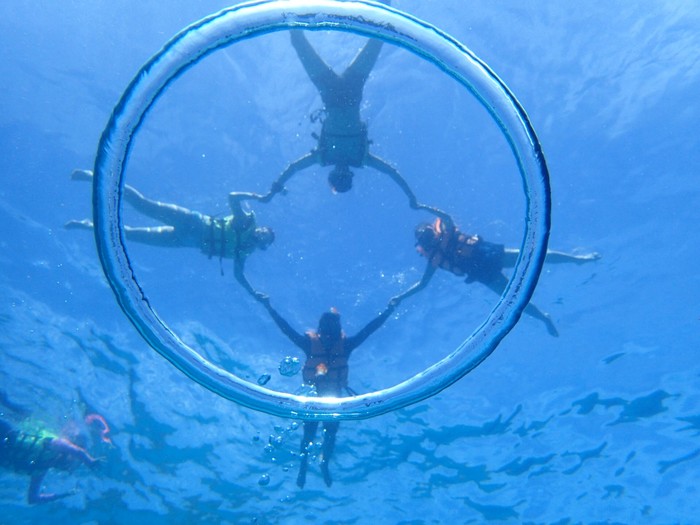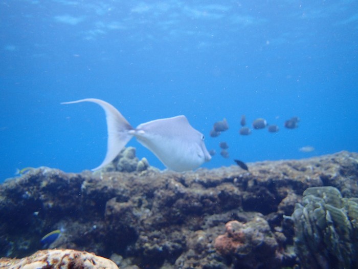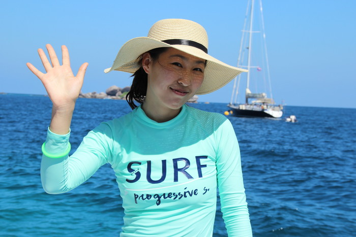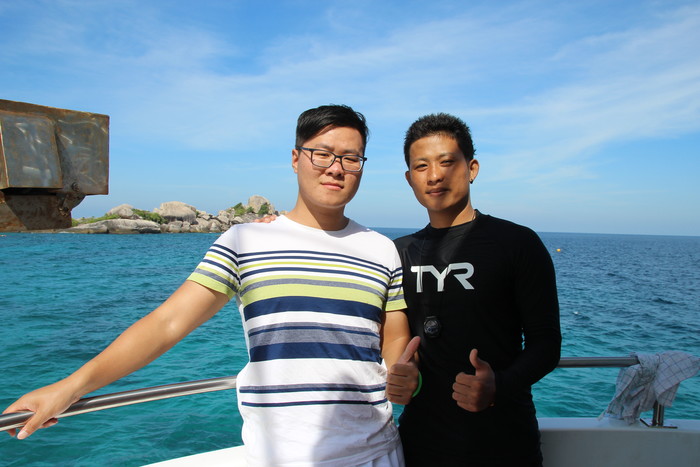 阿正看我们适应了,说带着我们去浅一点的地方看的清楚,就一路拉着救生圈(我跟昊哥一起扶着救生圈),游了好远,斯米兰的水下世界真是很漂亮,什么样的鱼都有,看的特清楚,我觉得去了斯米兰以后,什么海洋公园海底世界都是浮云。昊哥还在水下打手势问我O不OK,OK OK ,我现在真后悔没有租个水下相机,真应该拍下来。