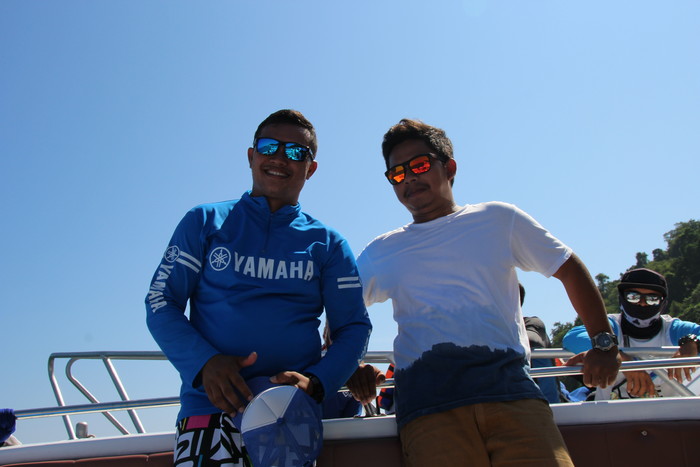 12点15分集合,出发去九号岛浮潜,船上开始分发浮潜装备,小沈阳花了大概5分钟的时间讲解。我跟昊哥自带浮潜装备,我们都不会游泳,也不大会穿带,更是没有浮潜过,之前看到淘宝人家有的评论说,船员会专门带着你下去浮潜,手把手教你,鼓励你等等,服务超好什么的,然而在这么一大堆一日游的游客里,我是想多了~~~