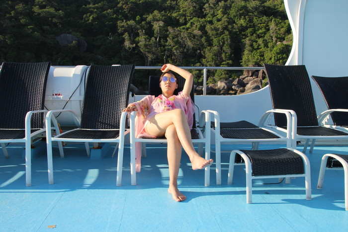 到了船上以后,听导游小新讲了注意事项,去房间换了衣服,要浮潜的可以跟船员再去浮潜一次,我鉴于之前下水的阴影,没有去,昊哥看我不去,也没有兴致去了,我们俩就在船上晒晒太阳~~~