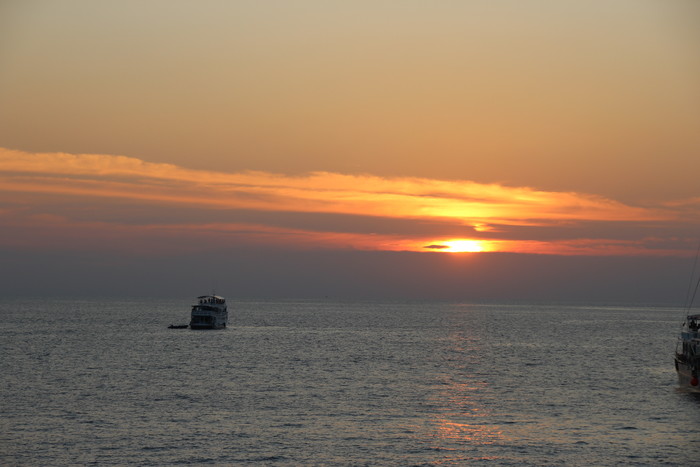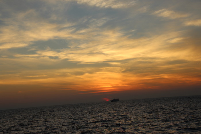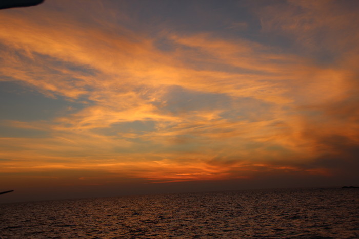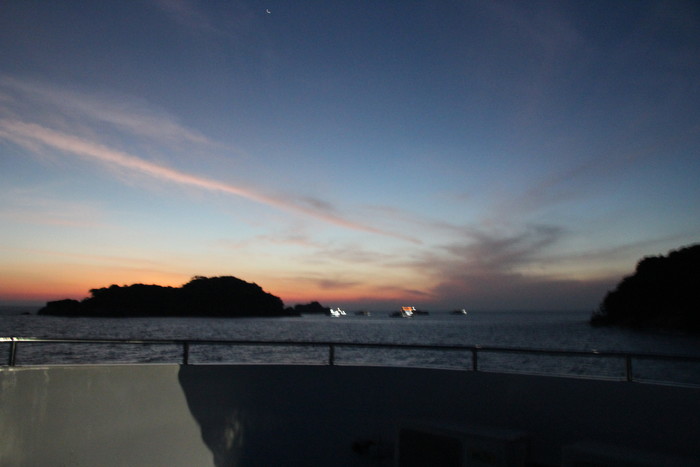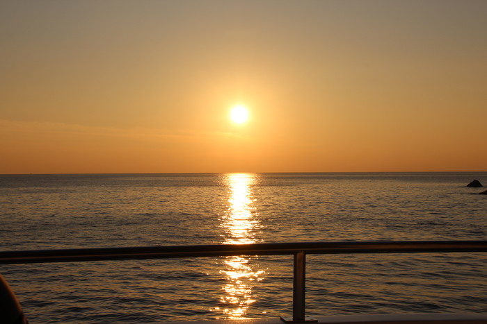 由于在船上晃来晃去,有点晕船,睡眠不是很好,三点多就醒了,迷迷糊糊到五点多,我就拖着昊哥起来去看日出,反正我是睡不着了~~~于是我们牙没刷 脸没洗 穿着睡衣就在那等日出~~~