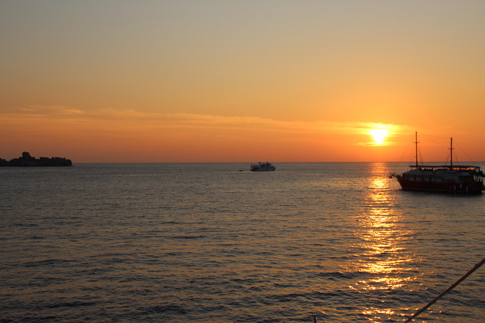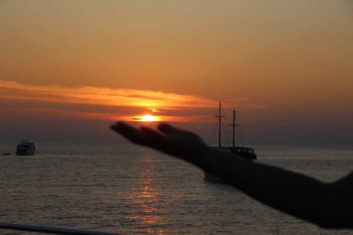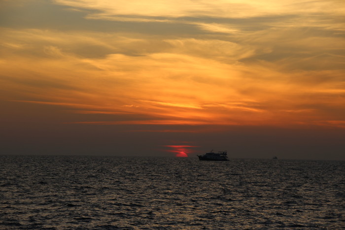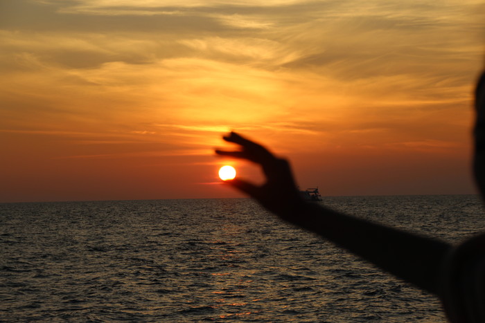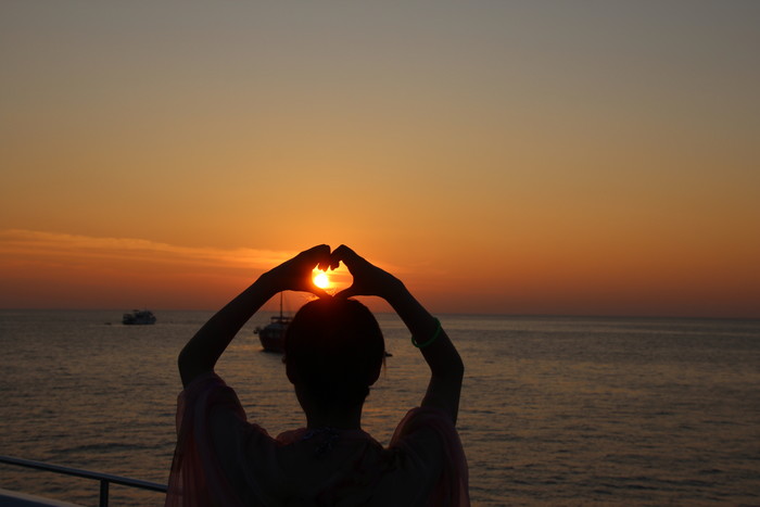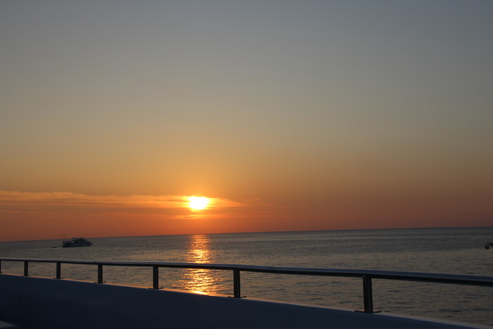吃晚饭的时候,听小新说,海上的日落很漂亮,赶紧吃完,蹭蹭蹭跑楼顶去看日落去~~