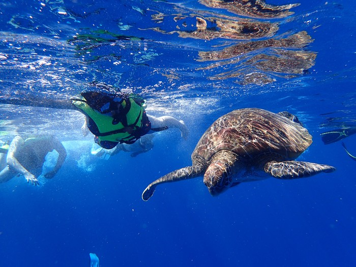 我拍的大海龟,站在船上都可以清楚的看到,可想而知这水得有多清~~~