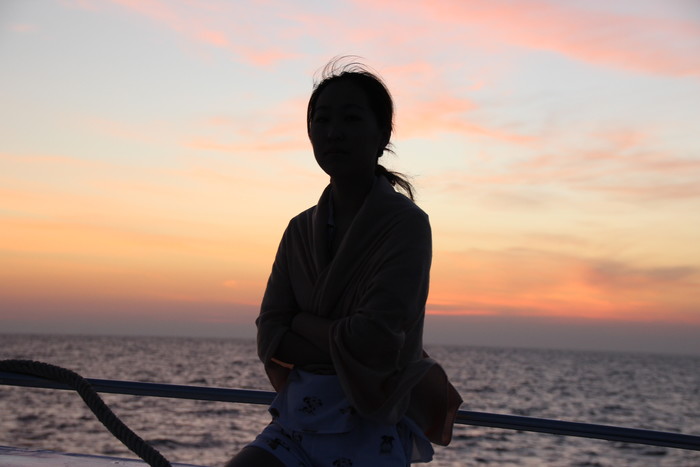原谅我这个有点傻逼的造型,照片是船上的一个小黑帮我拍的,主动帮我拍了一大堆照片,然而没几张好看的,主要我造型太挫,跟个渔家妹一样~~~