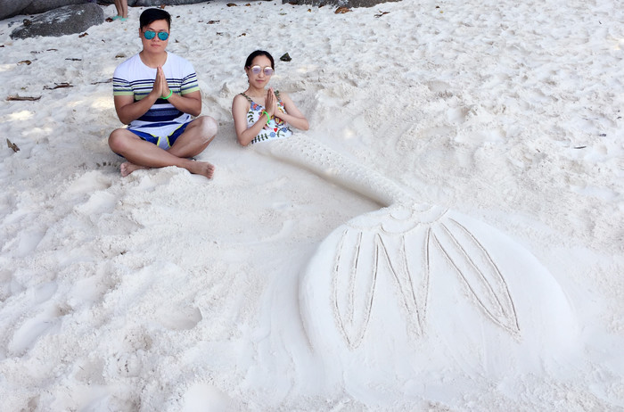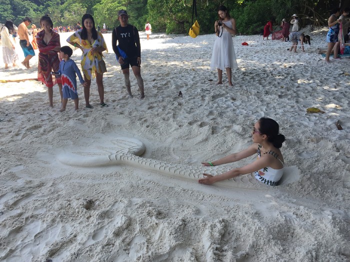 由于明天二公主要来,今天下午4号岛就要清场了,离集合时间还早,我们就在沙滩上铺着纱巾,舒舒服服休息休息。