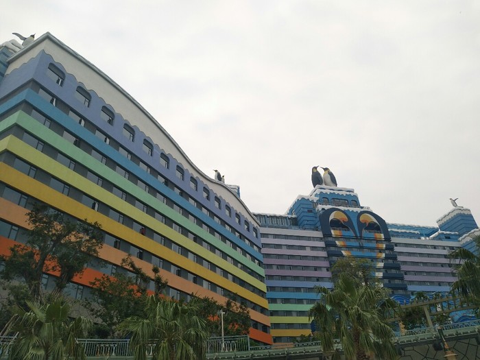 我们直接到达长隆企鹅主题酒店,五颜六色的露面,附近还有个主题酒店,什么主题忘了,感觉都蛮好看的