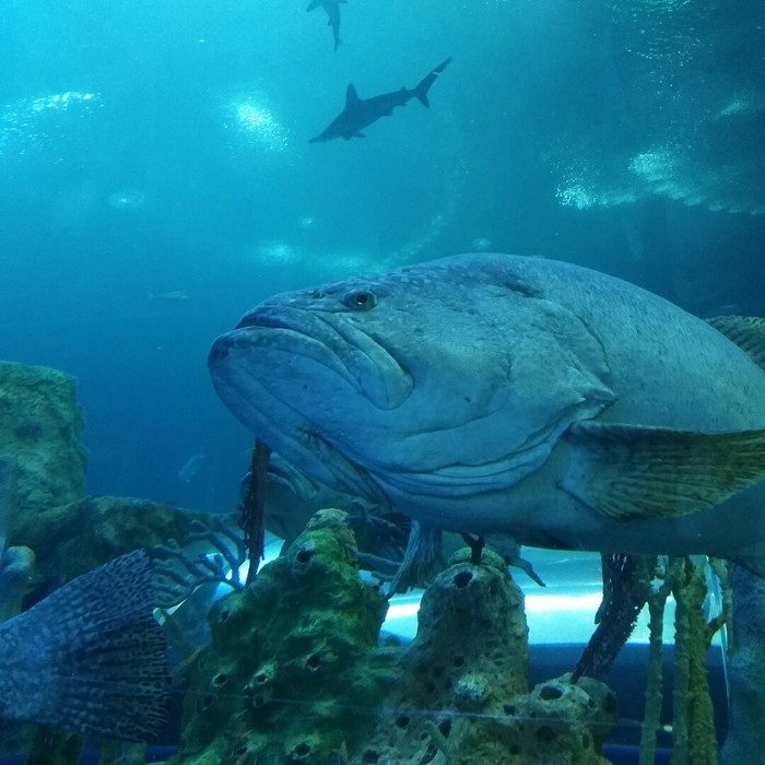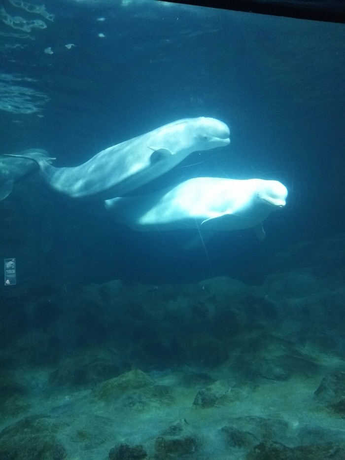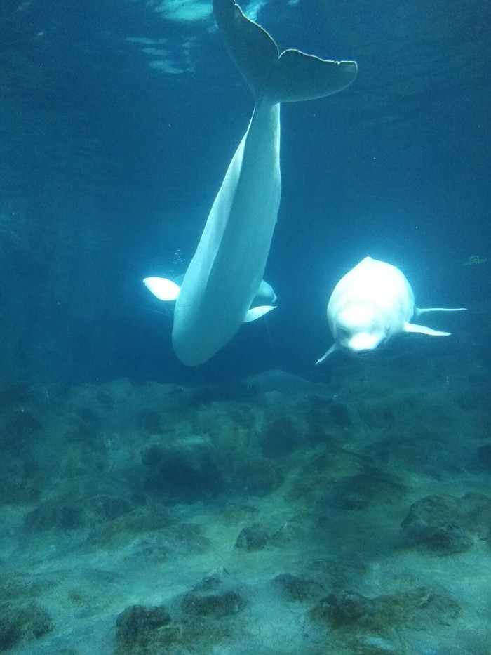 鲨鱼很大,白鲸也好大,而且超可爱的,自己冒泡,然后自己吐下去,还会调戏我们游客
