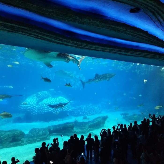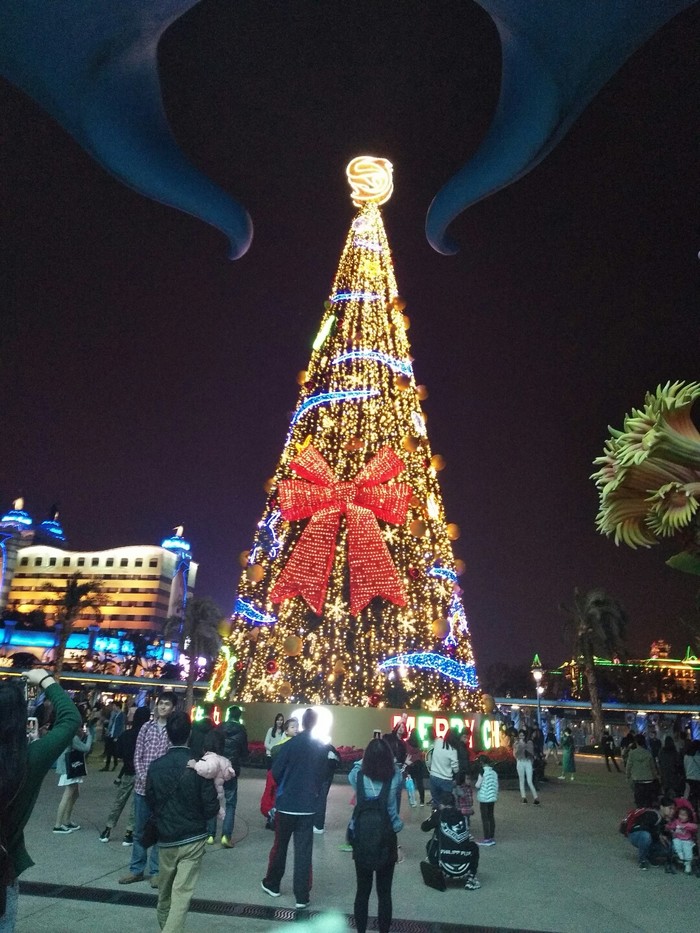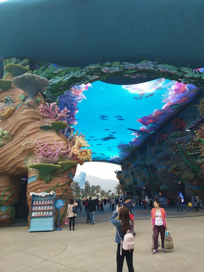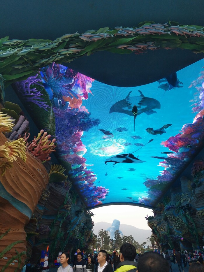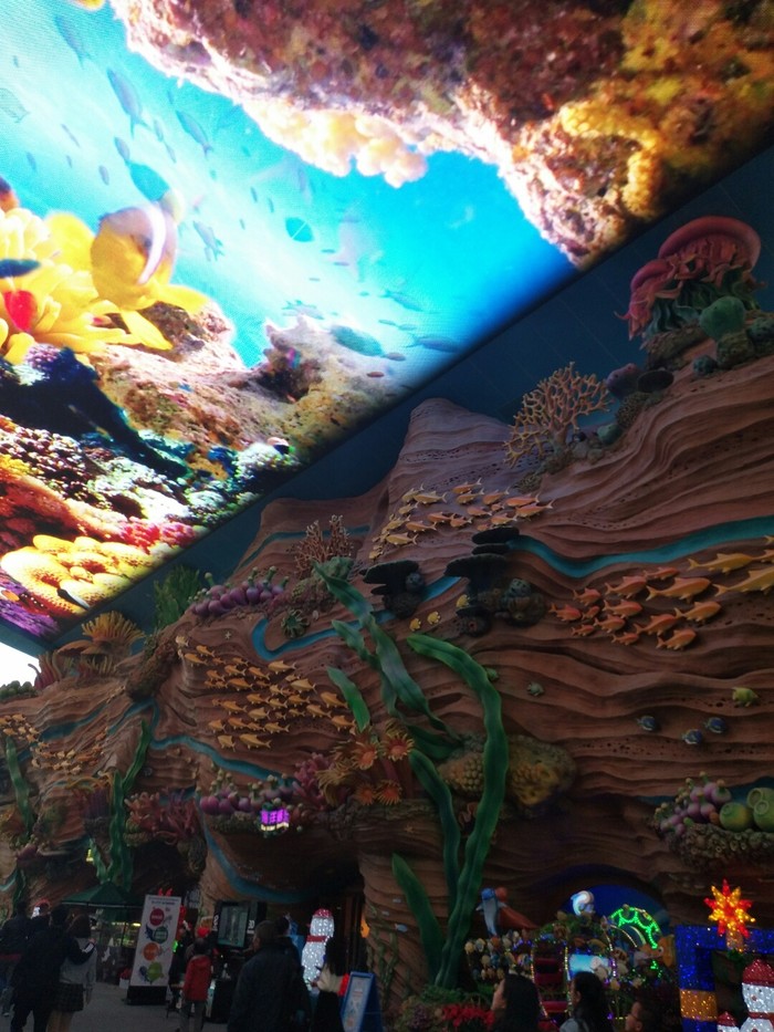 进去乐园第一幕就是这个了,巨屏放着各种海洋生物,去之前我看照片以为上面是真实海洋馆呢,实际上就是个屏幕,不过圣诞树