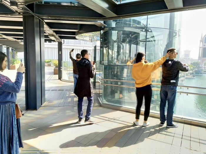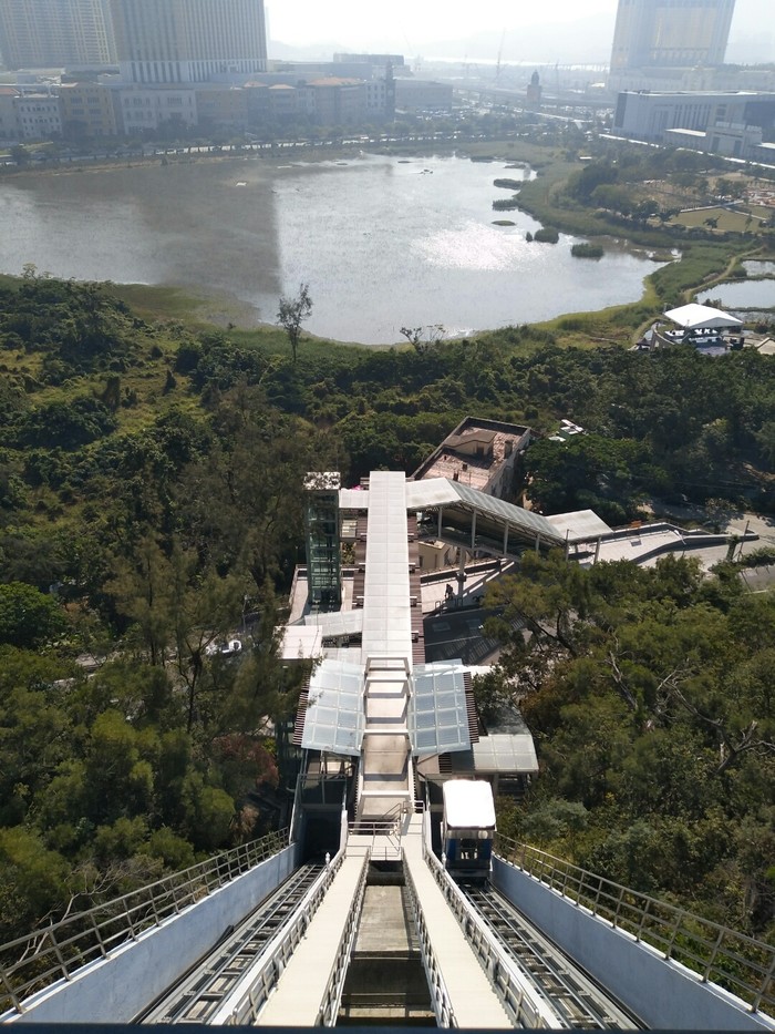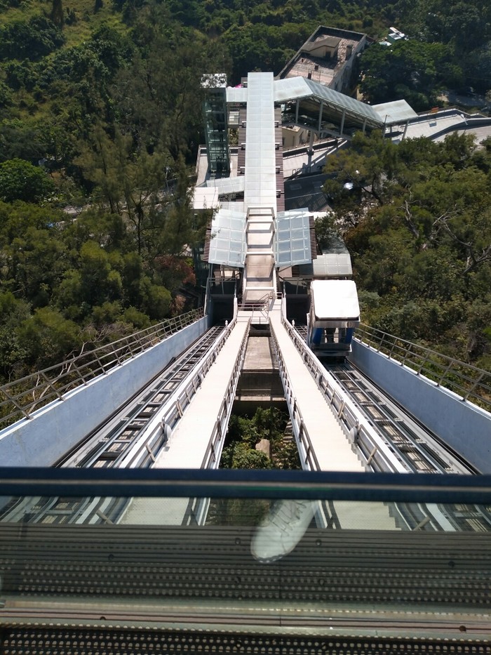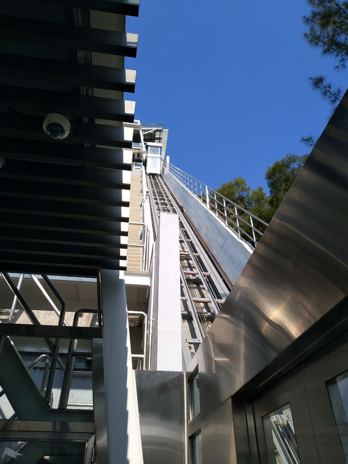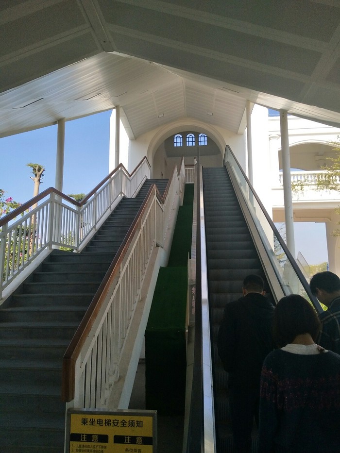 走去小吃街的路上,我们碰到一个观景台,顺势乘着电梯上去瞄了瞄,这样往下看,有点像缆车,上去后,啊~风光无限好啊~