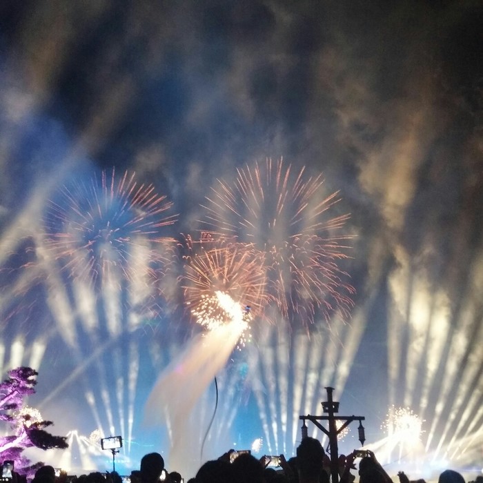人工湖有好大的火花,哄哄响,远远都能感受到那热浪,这个没拍到,毕竟一瞬间的火柱~