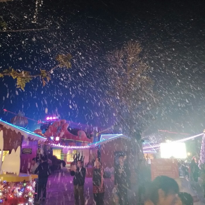 玩雪是我们最后一个项目了,刚好赶上最后一轮,也天黑了,各路灯光亮起来了