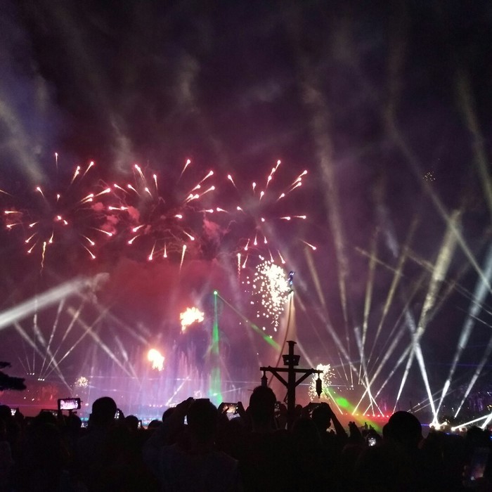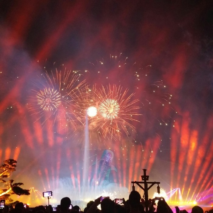 行程走到这里,就剩下最后一个项目了,闭园秀,烟花展了,各路人马都纷纷跑到那个人工湖那里寻找好位置了