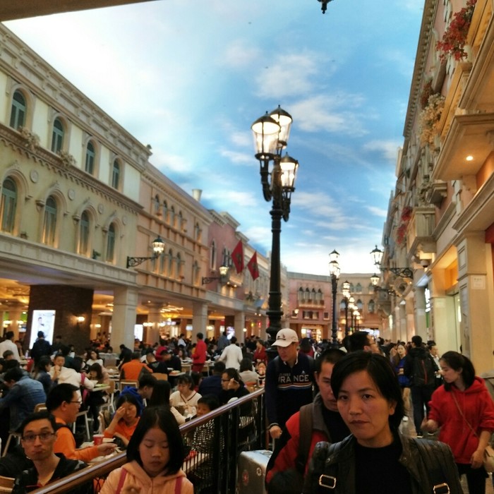 刚开始我们随意逛了下,然后决定先去找吃的地方,然后再去看威尼斯那条运河,谢佩为我们澳门行的导游