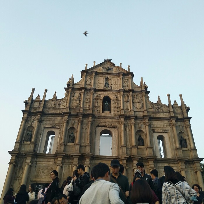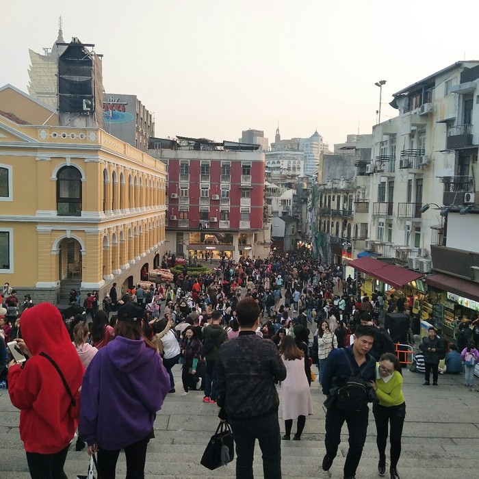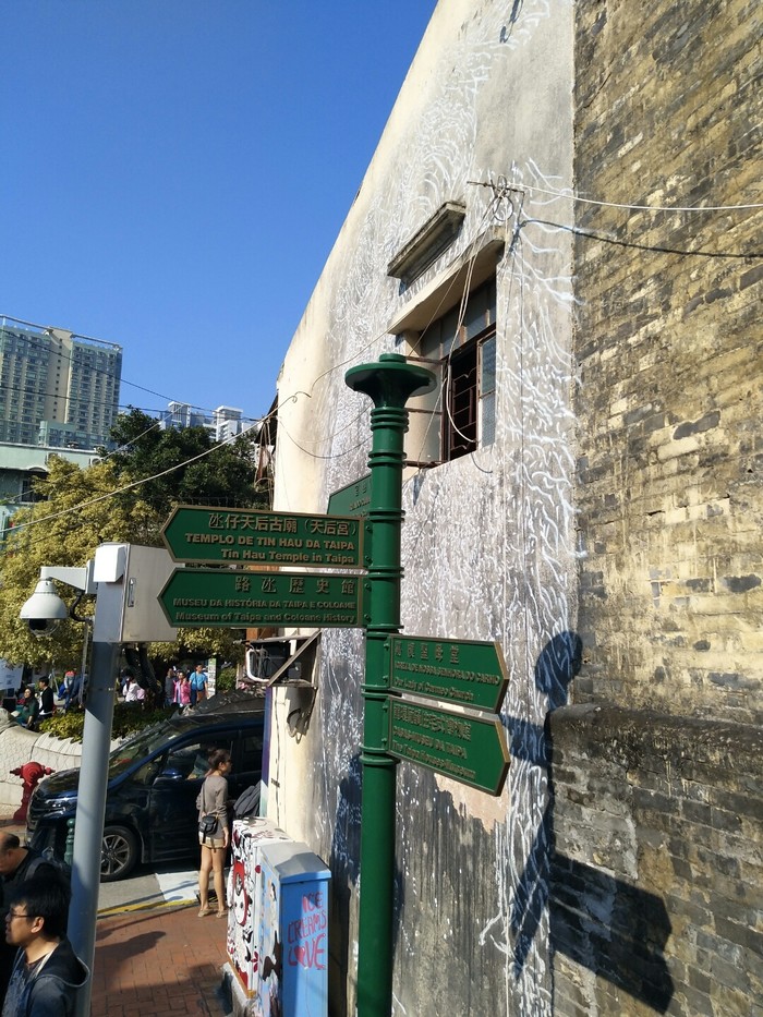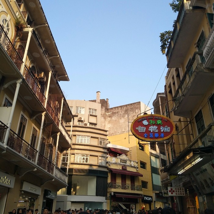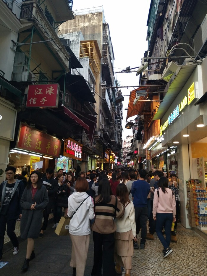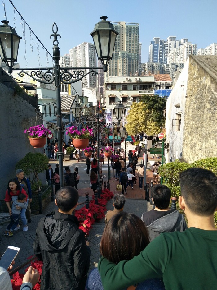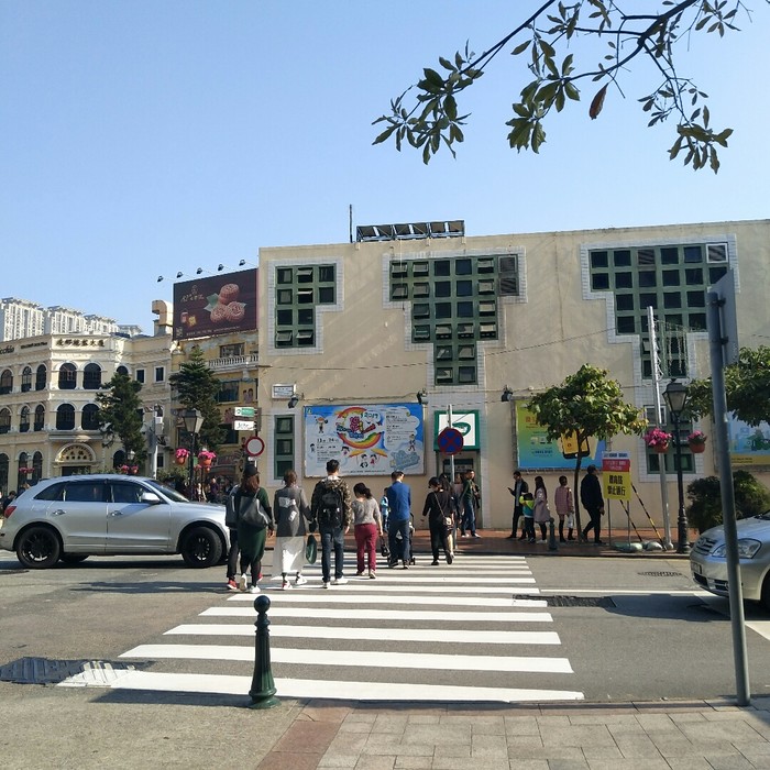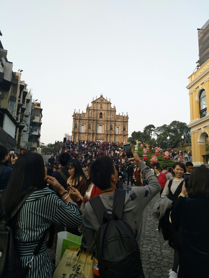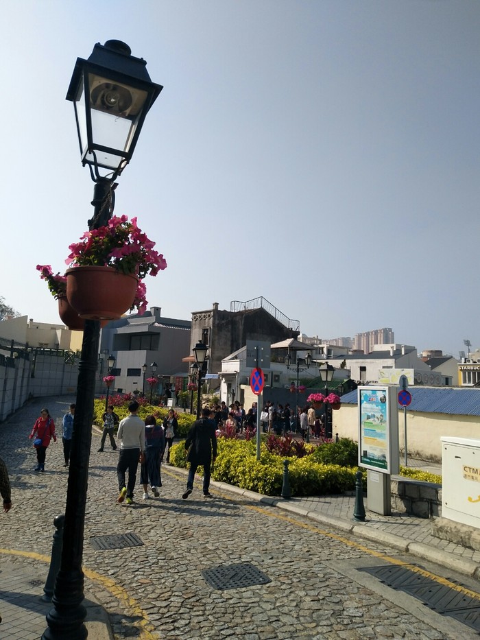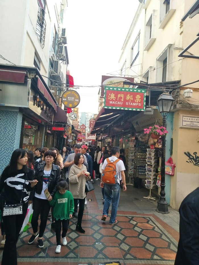 威尼斯附近都是酒店吧,我略略查了攻略,过对面新马路有去大三巴的车,然而我们先去附近的凼仔官也小吃街解决肚子问题,然后再出发大三巴牌坊,然后开始了我们几公里的徒行~