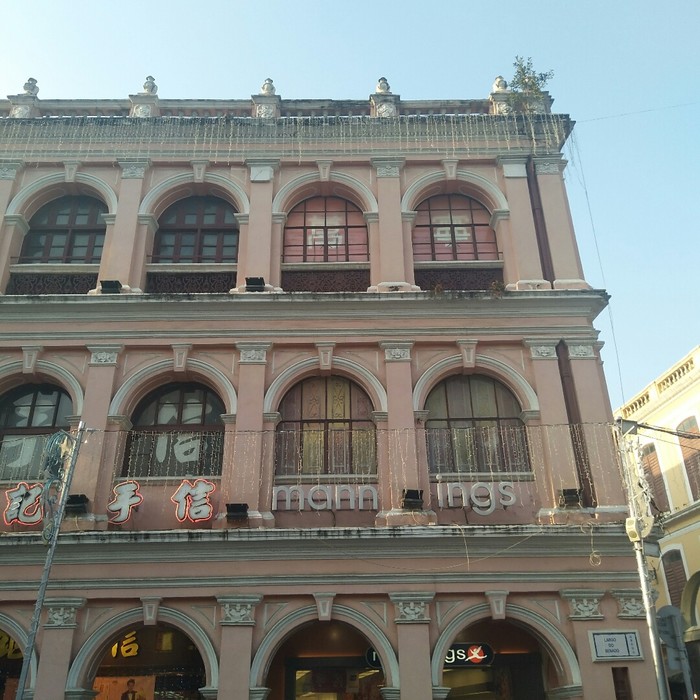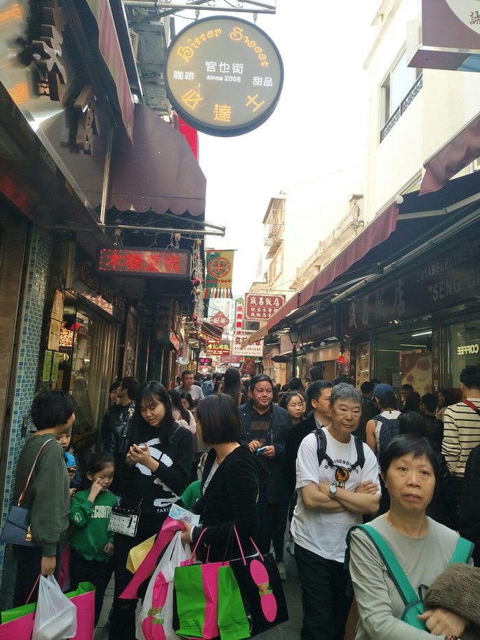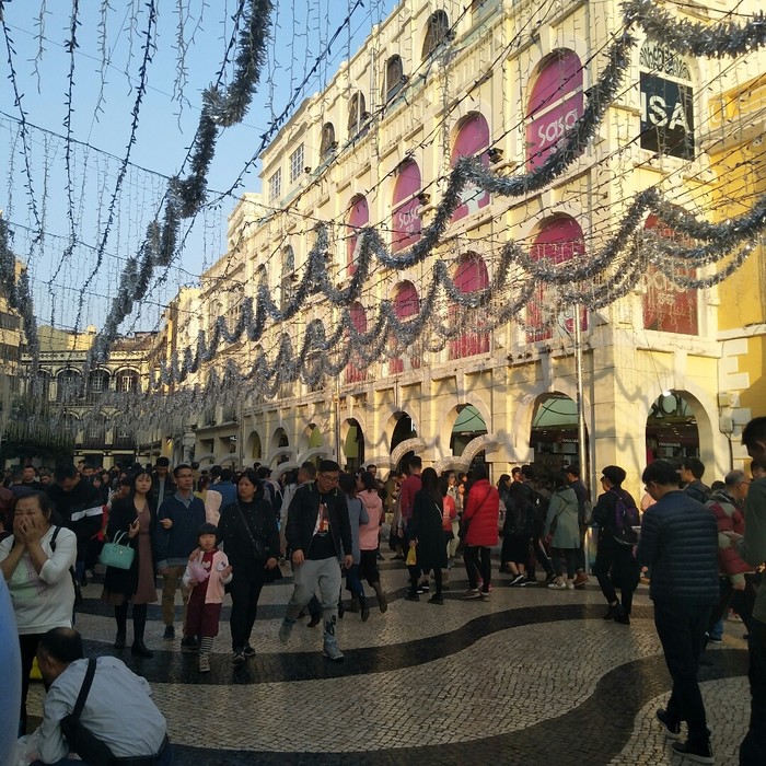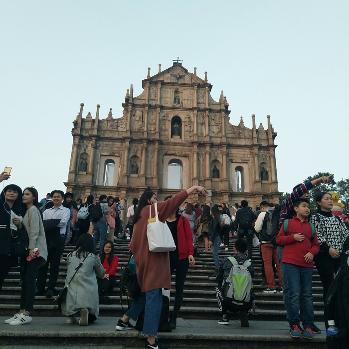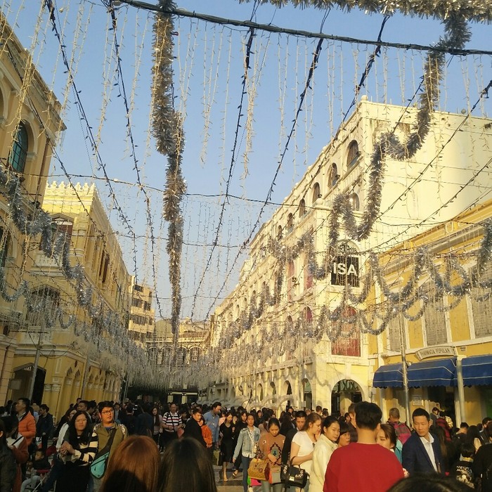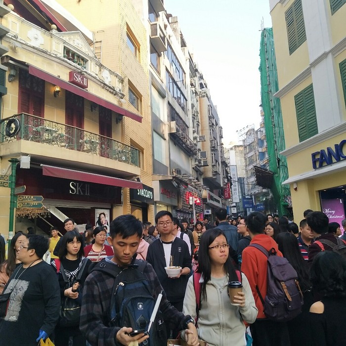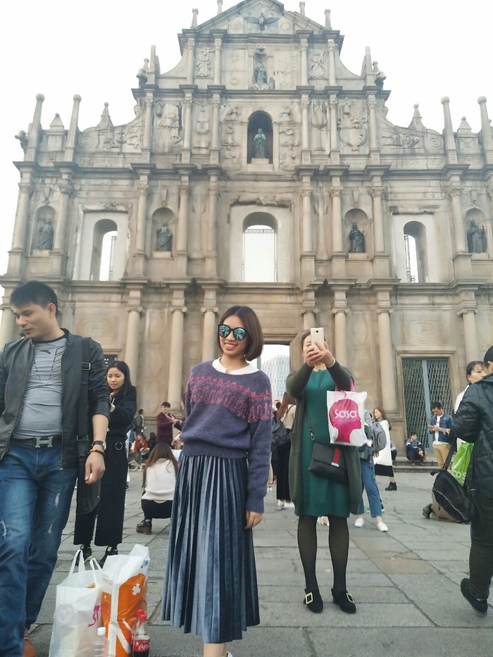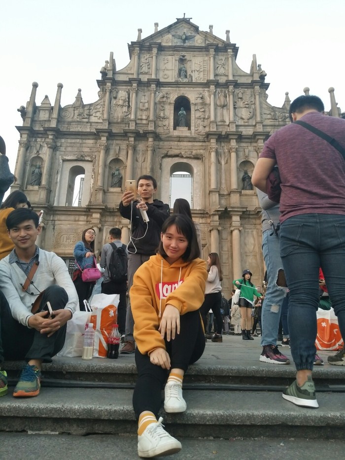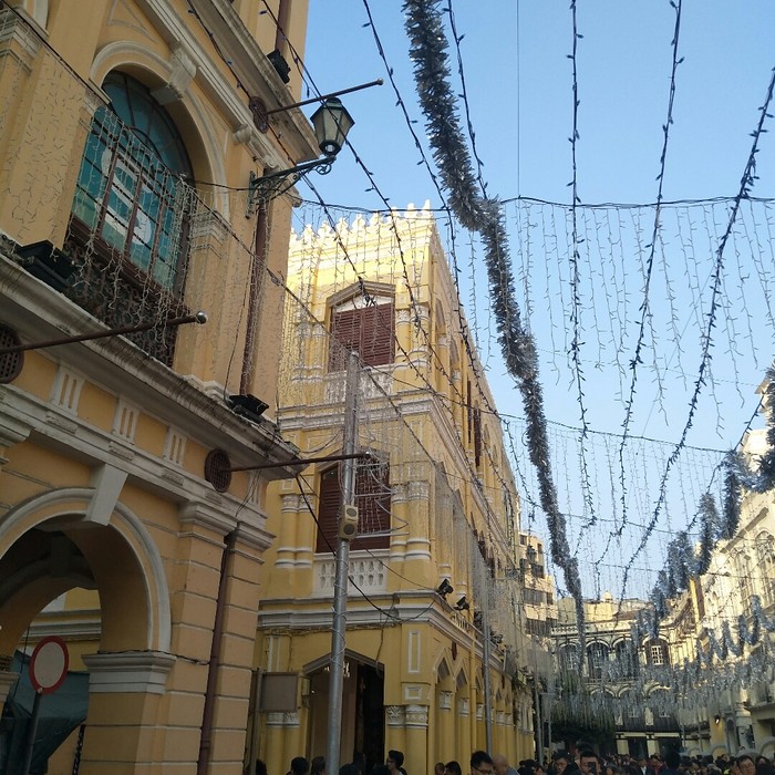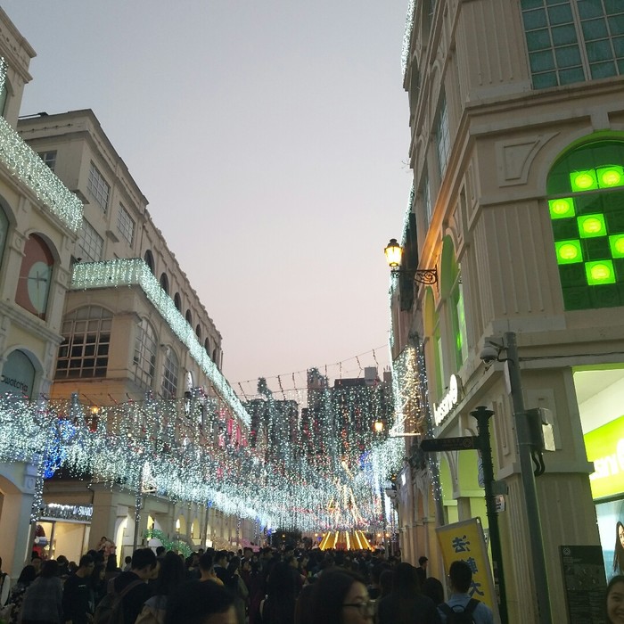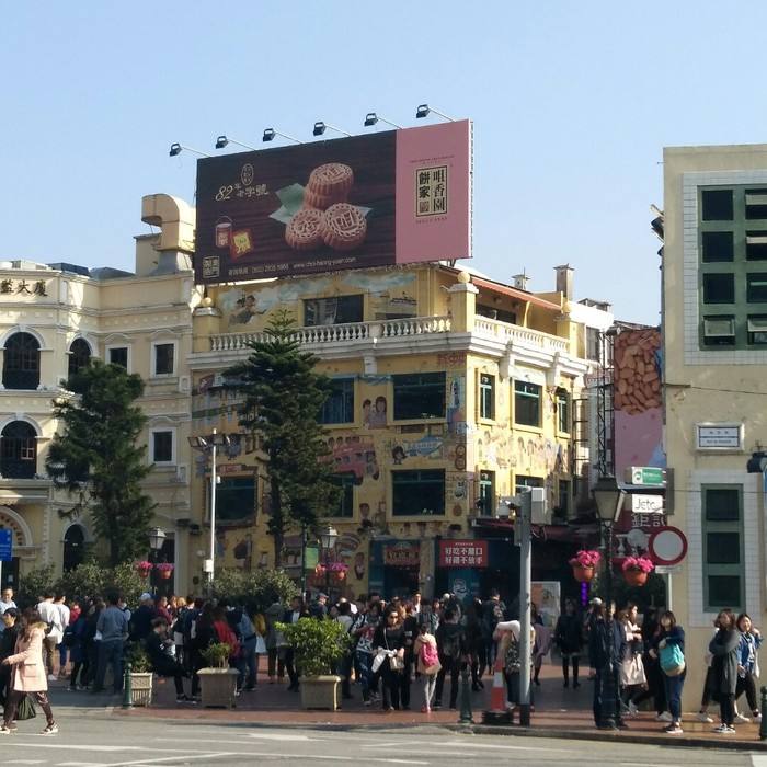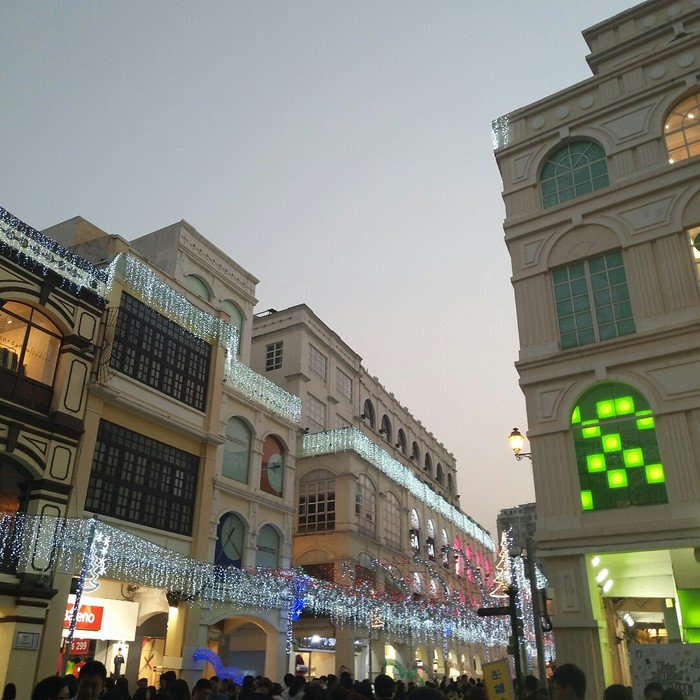 威尼斯附近都是酒店吧,我略略查了攻略,过对面新马路有去大三巴的车,然而我们先去附近的凼仔官也小吃街解决肚子问题,然后再出发大三巴牌坊,然后开始了我们几公里的徒行~