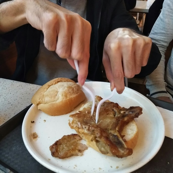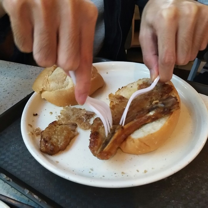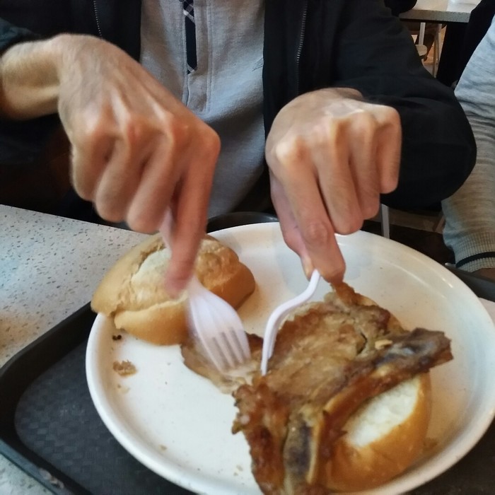 我们兜兜转转,最后选了出名的猪扒包,对于澳门美食,我只知道葡挞,其他一概不知
