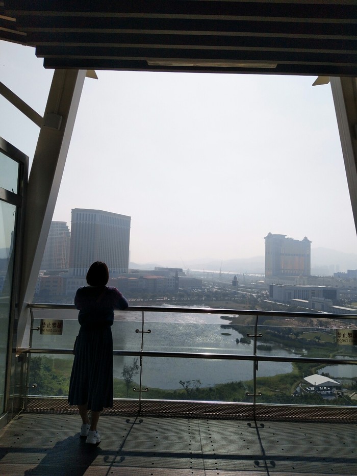 我们都没想到步行街的尽头有个小惊喜,就是对岸就是澳门,有条长长的海岸,附近好像还有好几个景点,例如相思瀑布,珠海澳门环岛游码头(楼上就是码头门口),莲花大桥我们也能看到,那是过澳门的必经之桥。站在那里,可以清楚的看到澳门边沿,威尼斯大楼等等,宽阔的海岸线也是bilingbiling美的!还有,长隆居然也在附近,距离我们一两公里远,没想到离我们住的地方这么近。