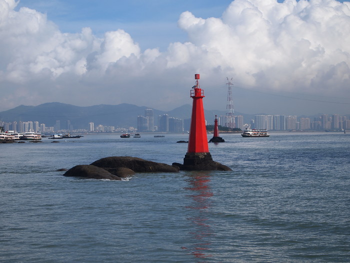 第二天早早起来去钢琴码头坐渡轮过鼓浪屿,码头就是在小吃街对面而已。上船后上二楼先找位置再到售票窗再补1块还是2块(有人验票),不过视野绝对比一楼好很多。