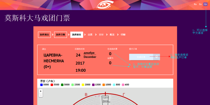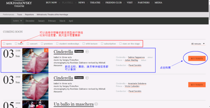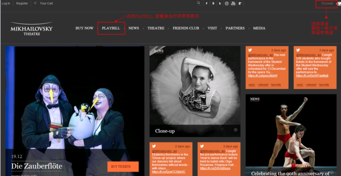 用米哈伊洛夫剧院的官网购票流程来做个示范,其他官网的操作都差不多。