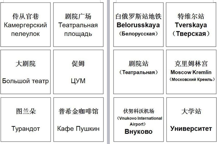 我相信很多童鞋在出国之前考虑的问题一定是语言不通,特别是从来没试过自由行的,但其实做好了准备,不懂俄文也不需要太捉急。比如坐地铁,我可以事先查询好需要到达的地铁站点,属于哪一号线,俄文、英文的对照,可以的话最好打印出来,拿着这个俄文站点名称,在地铁站可以对照一下在哪边上车,连问路都不需要。如果打车去某景点或者某个酒店,也是一样,打印出来地址,或者景点的中英俄三种文字对照,直接给司机就好。当然,事前准备功夫要做好,查询清楚。另外,我们每个成员人手一份大家的俄国电话号码、酒店地址、酒店联系人电话等,不小心走失最少也能保证联系得上。