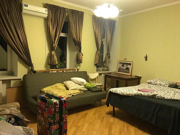 公寓的环境尚可,看得出这个房子比较旧,而且装修也不算新,但尚算宽敞,三房两厅足够容纳我们,还有个小厨房,微波炉、咖啡机、锅碗瓢盆一应俱全。最最不习惯的可能是厕所好小,进去连个转身的空间都没有,比飞机机舱厕所还小。房子里还摆了一台钢琴,看起来挺像是自住房,后改造成公寓出租,但真的无法理解他们为什么要把厕所弄成这样,老毛子普遍都比较大只,何苦为难自己。