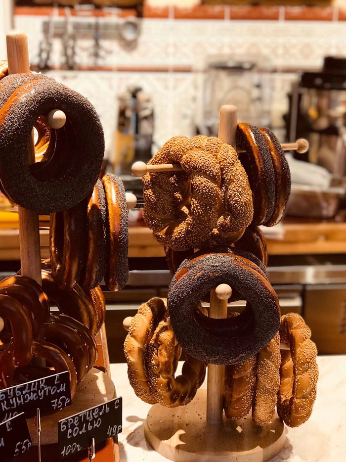 沿着特维尔大街往红场方向走,突然闻到了一股咖啡的香气,一家装饰精致、各种餐点琳琅满目的咖啡店,忍不住就进去了,初到贵境,来一顿丰盛的早午餐如何?