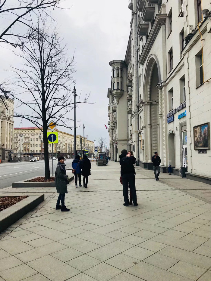 吃完早午餐,感觉全身都暖了很多,而莫斯科的大街,也慢慢开始热闹升温。在浪漫的特维尔大街,一对难舍难分的恋人在拥抱话别,突然就想起《莫斯科不相信眼泪》。