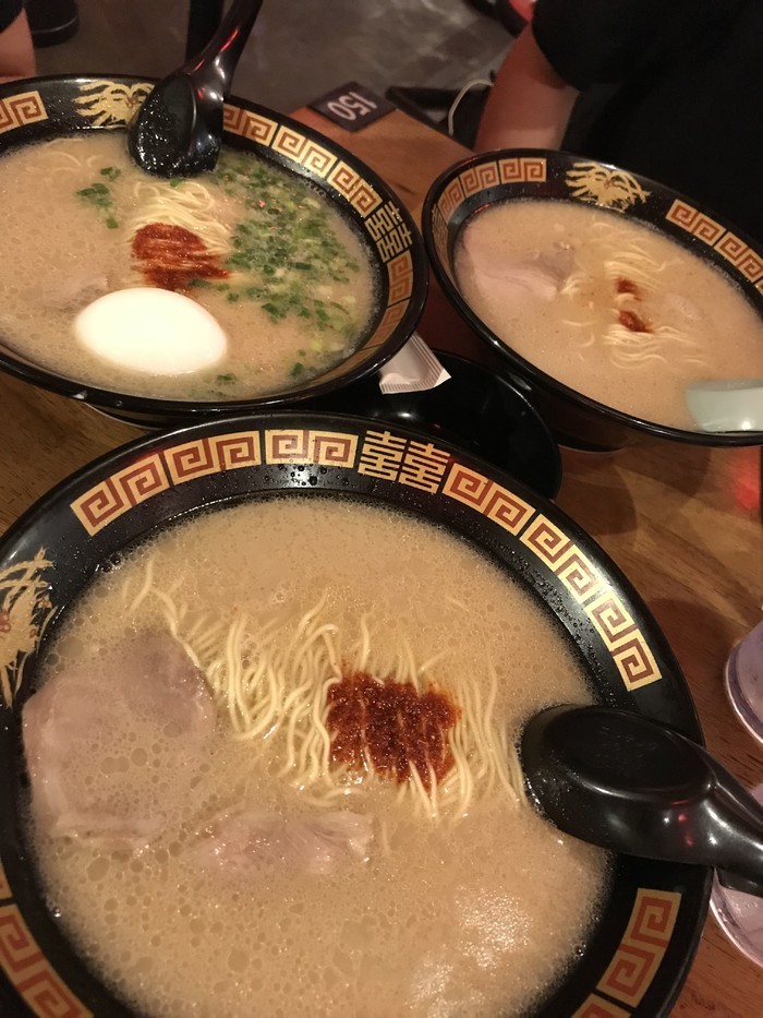 1.一兰拉面,这个网红爆款当然第一个说,尖沙咀和铜锣湾有店,3点以后非常多人排队,4点以后如果是单人的会比较快叫你进去吃。单人建议去铜锣湾店,因为那里是单人位吃起来没那么尴尬,尖沙咀那个是大桌的单人还要和其他人拼桌。如果你看到要排队你预计要排1个小时左右,因为里面还有蛮长的队伍。