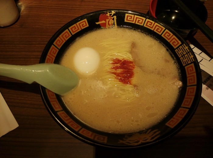 一兰拉面: 其实就面有点像兰州拉面,不过汤和辣粉好吃,重点推辣粉,一下子把汤的味道提出来,温泉蛋和其他配料还行吧,还有不要圈错下面的精选套餐是加料来的。