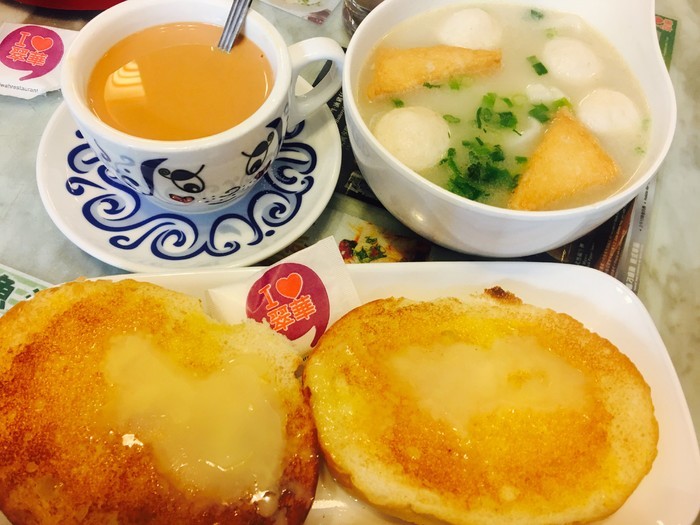 14、炳记茶档,Eason推荐,港剧取景点,我没有去过,龙龙有去,点了Eason推荐的猪扒面和奶茶,评价是就是普通的公仔面和港式奶茶。。。不是很推荐。
