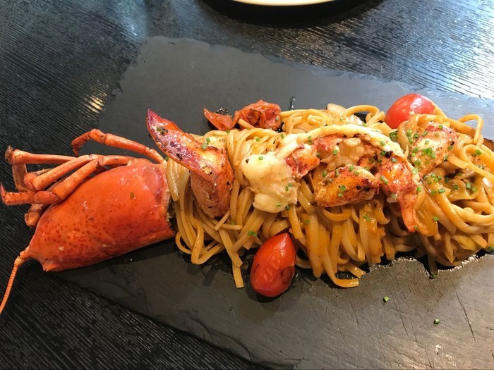 龙虾意面 :还可以,龙虾怎么做都不会难吃,意面是扁的面