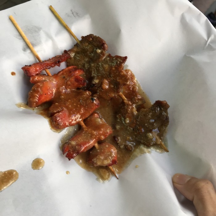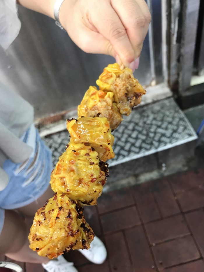 26、串皇 ,就在皇后隔壁,和亚玉三间连着,是吃BBQ,主要是酱很好吃,我们要了辣的,主打的鸡皮:很快就卖完了,去的时候已经没有,建议早点去。可以铺外面堂食和外带,酱汁很多建议堂食。
